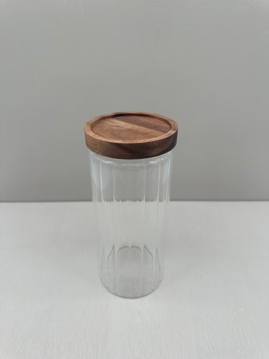 Voorraadpot ribbleglass long - bamboe deksel - 1300 ml