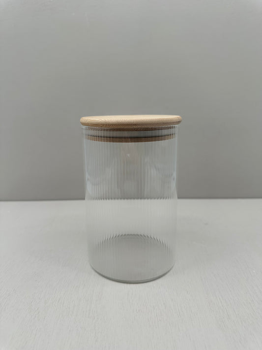Voorraadpot ribbleglass short - bamboe deksel - 600ml