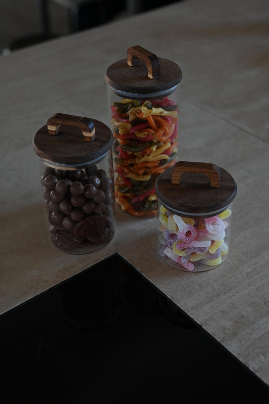 Minimalistische Glazen Voorraadpot met Houten Handgreep 570 cc