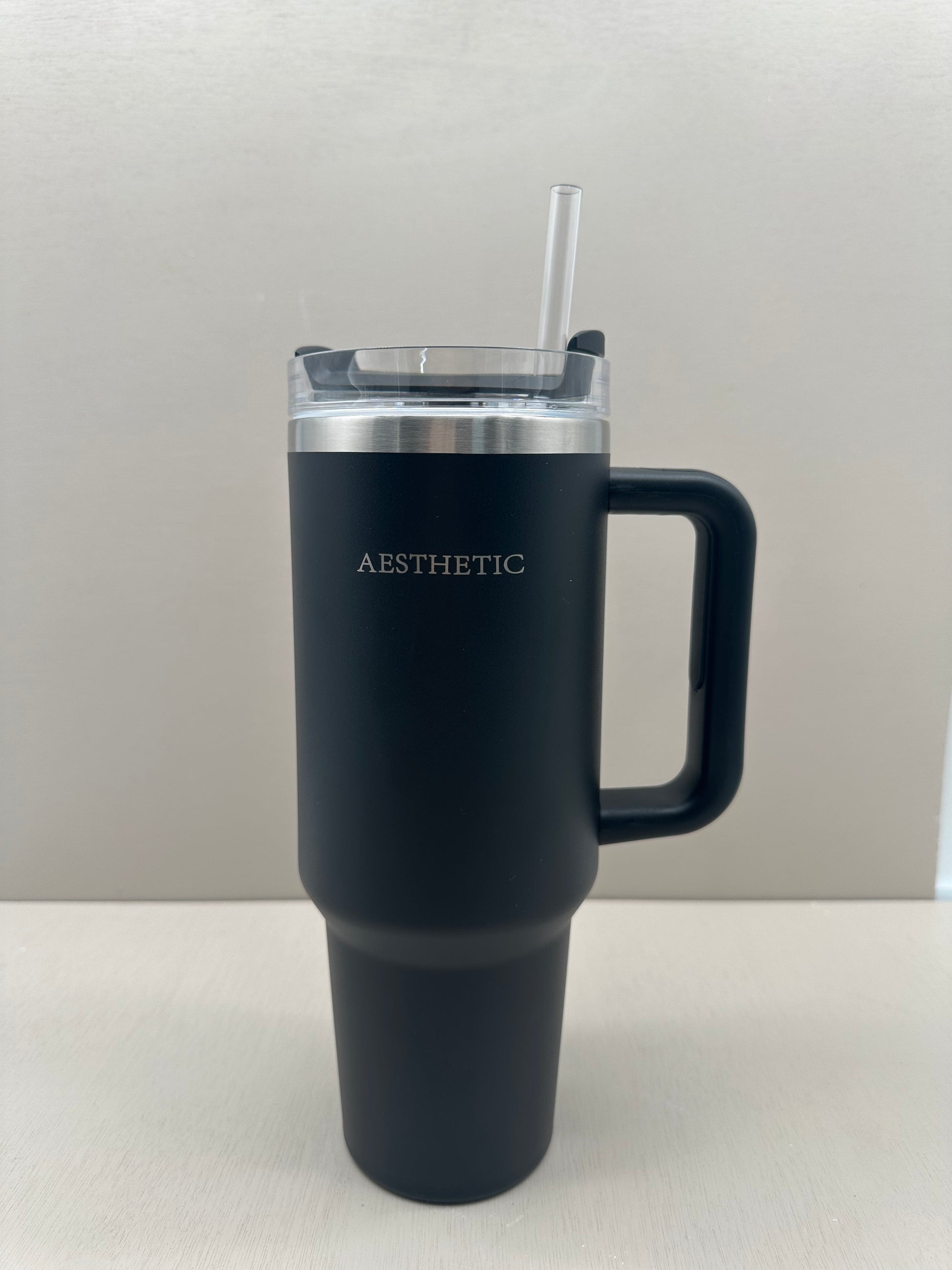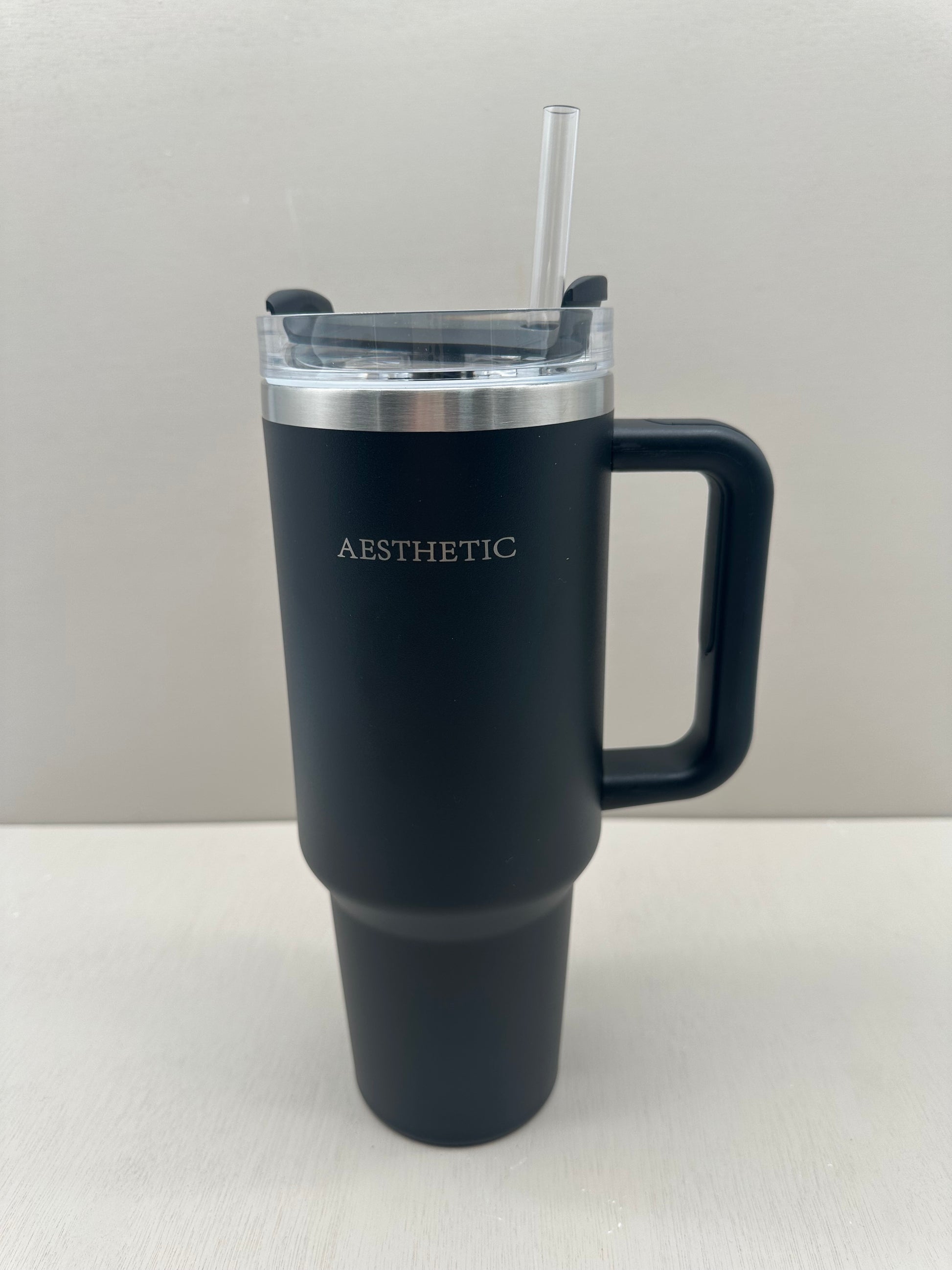 Aesthetic black Thermobeker met Handvat en Rietje”