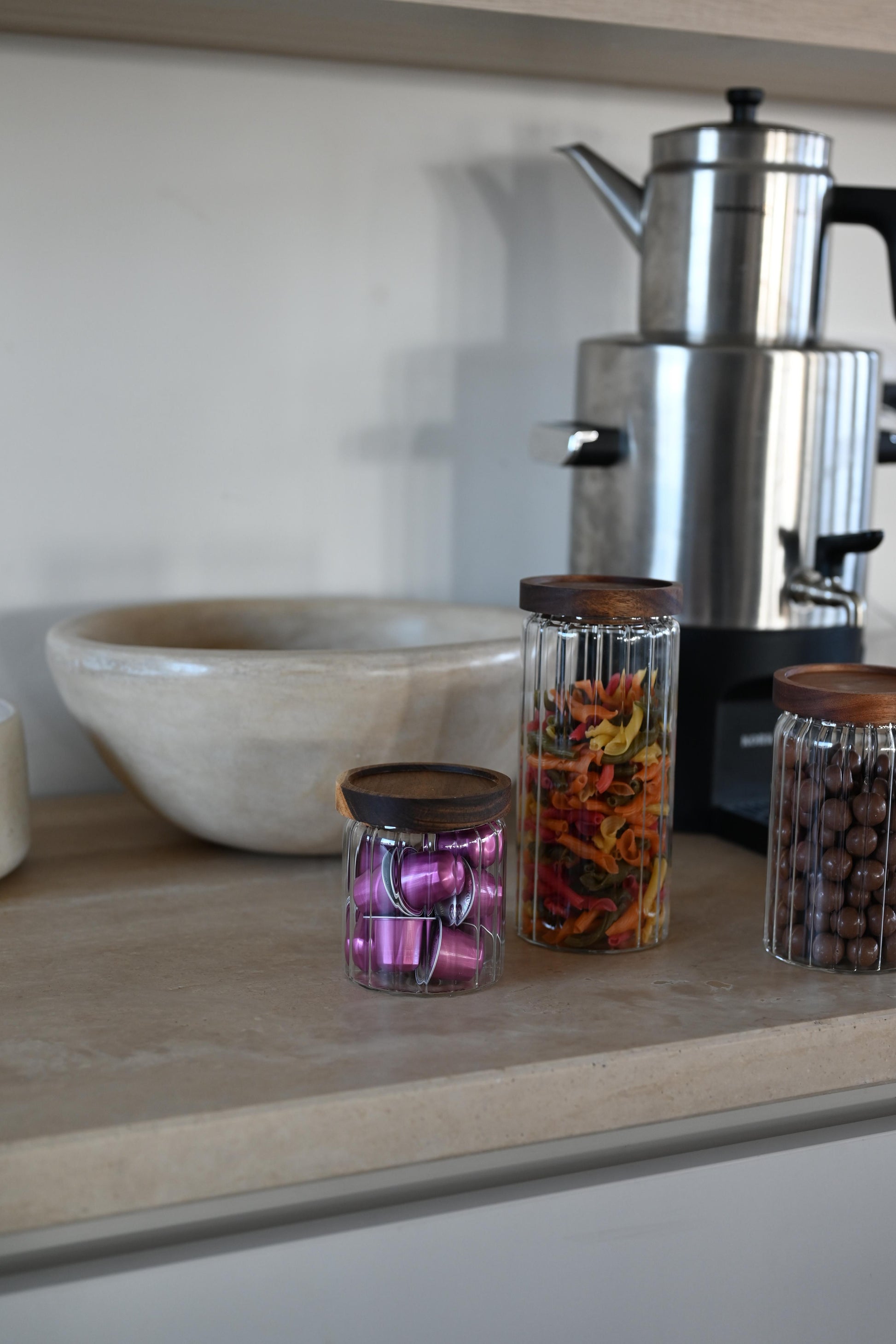 Deze voorraadpot is niet alleen functioneel, maar ook een stijlvolle toevoeging aan elke keuken of eetruimte.