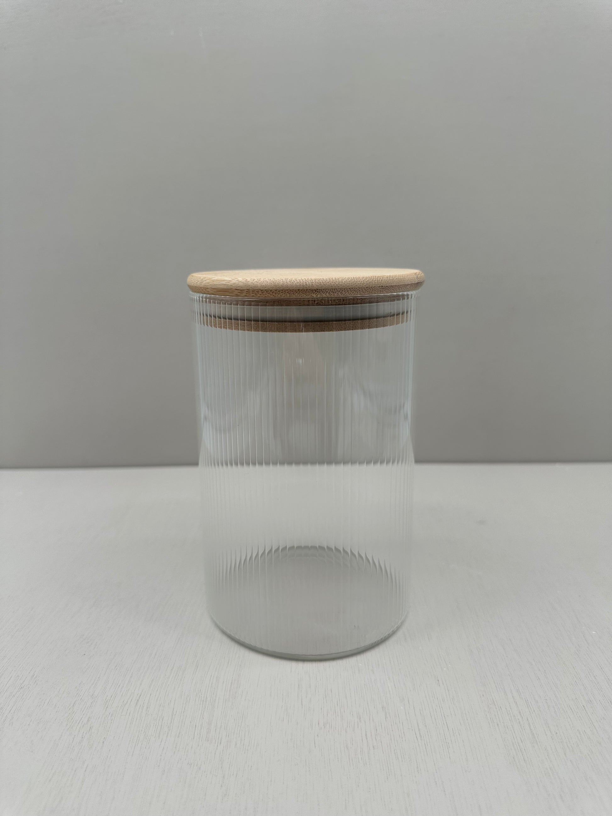 Voorraadpot ribbleglass middle - bamboe deksel - 970 ml